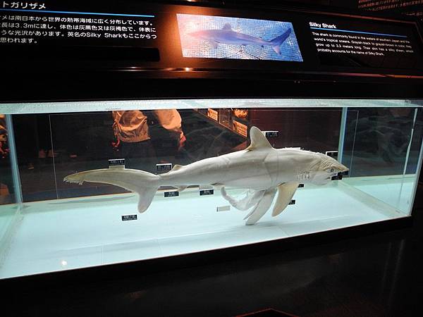 鯊魚館,目前全世界已知有超過500種鯊魚,是海中食物鏈的頂端生物,一流的海中掠食者。館內收藏了古代巨型鯊魚的牙齒骨骸標本,嘴巴可以張開達一個成人的身高,含有鯊魚皮標本、各類鯊魚牙齒的展示、簡介、鯊魚一生的成長過程簡介等,以及最吸引目光的鯊魚水槽!